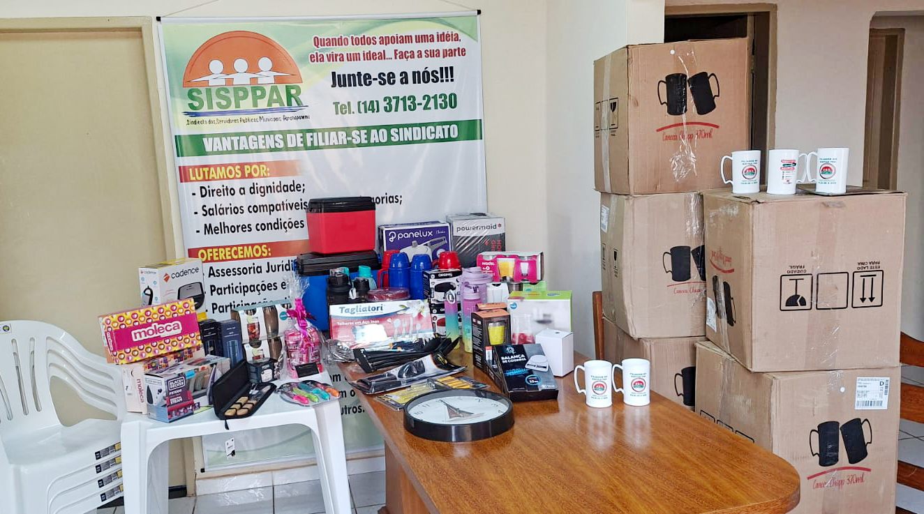 O SISPPAR tem uma excelente notícia para os companheiros: os prêmios da tradicional Festa de Confraternização dos Servidores já chegaram! 🎉 Serão mais de 40 itens a serem sorteados, incluindo mesa com cadeiras, relógio, jogo de talheres, garrafa de água, cafeteira, sanduicheira, panelas e muitos outros brindes. Quem ainda não é associado pode procurar um de nossos diretores no Sindicato e se filiar, garantindo automaticamente a participação no sorteio. Inclusive, no próprio dia do evento, até pouco antes do início dos sorteios, será possível se sindicalizar.
